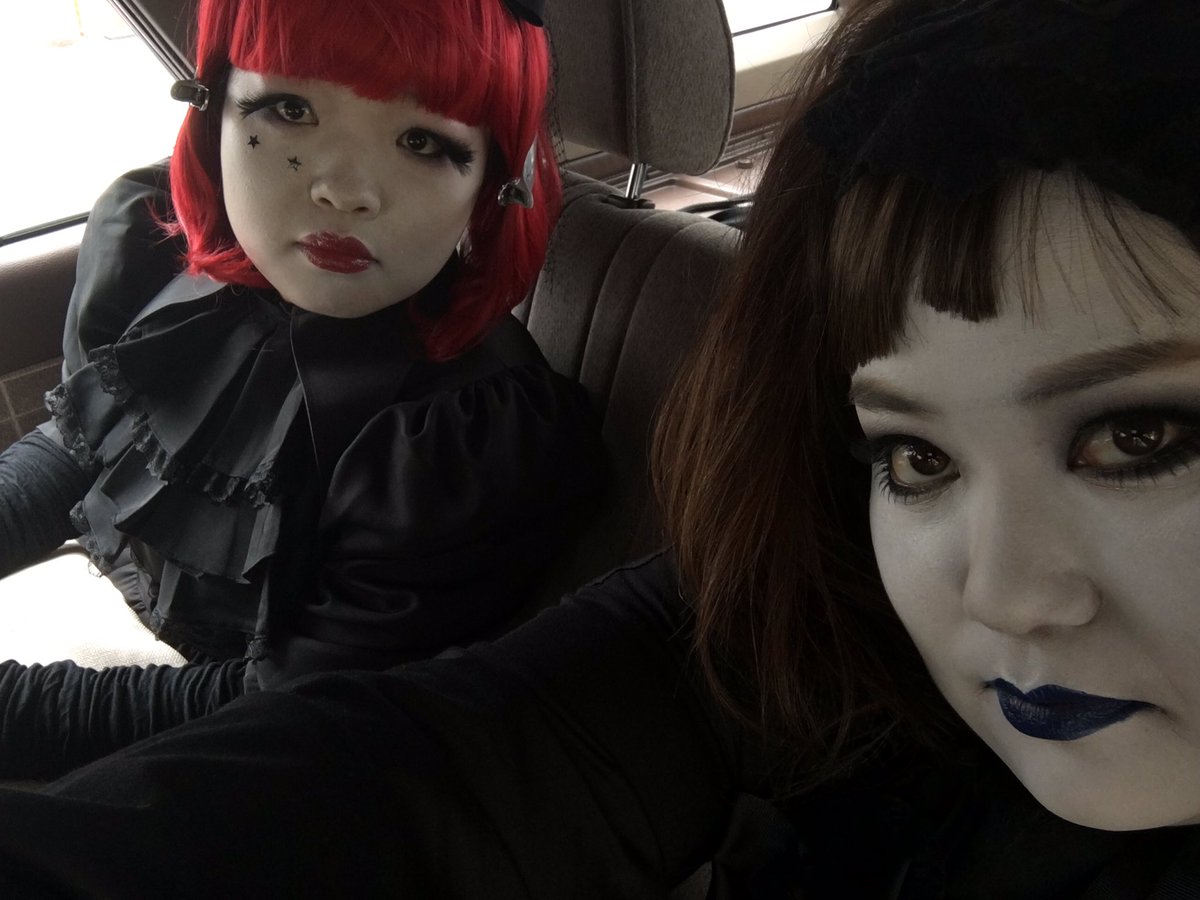 スタイリストによって更新された投稿では、おかずクラブの2人がフリルたっぷりの漆黒のワンピースを身にまとい、ヘッドドレスをつけた“ゴスロリ”姿を公開。